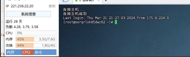 如果出现如下窗口,即表示 成功连接 Linux 云服务器